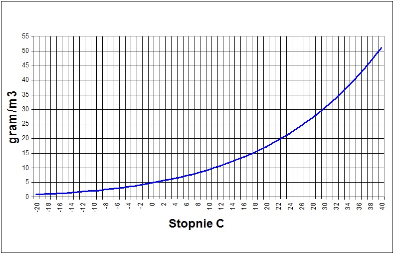 Ile wody maksymalnie może zawierać powietrze o danej temperaturze: